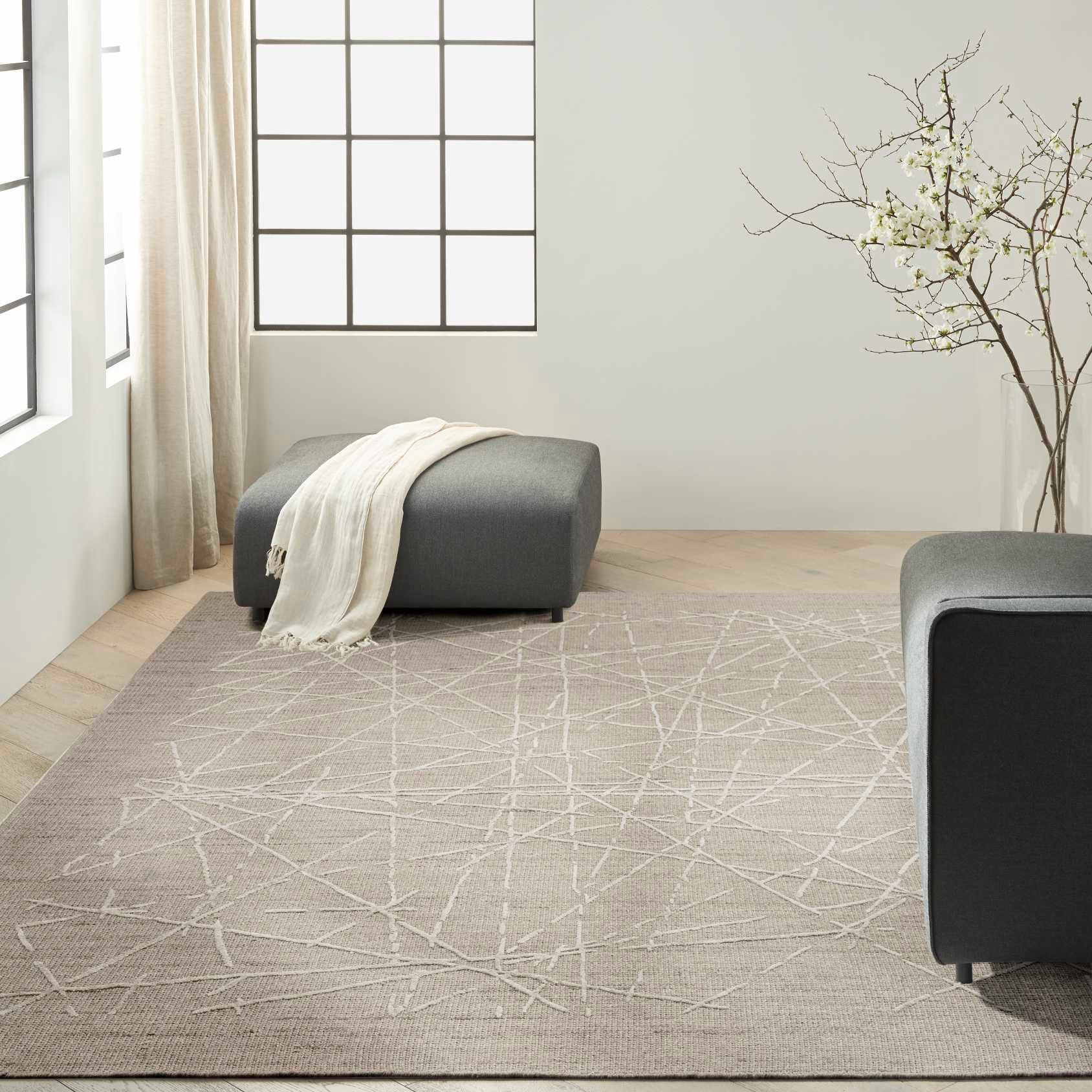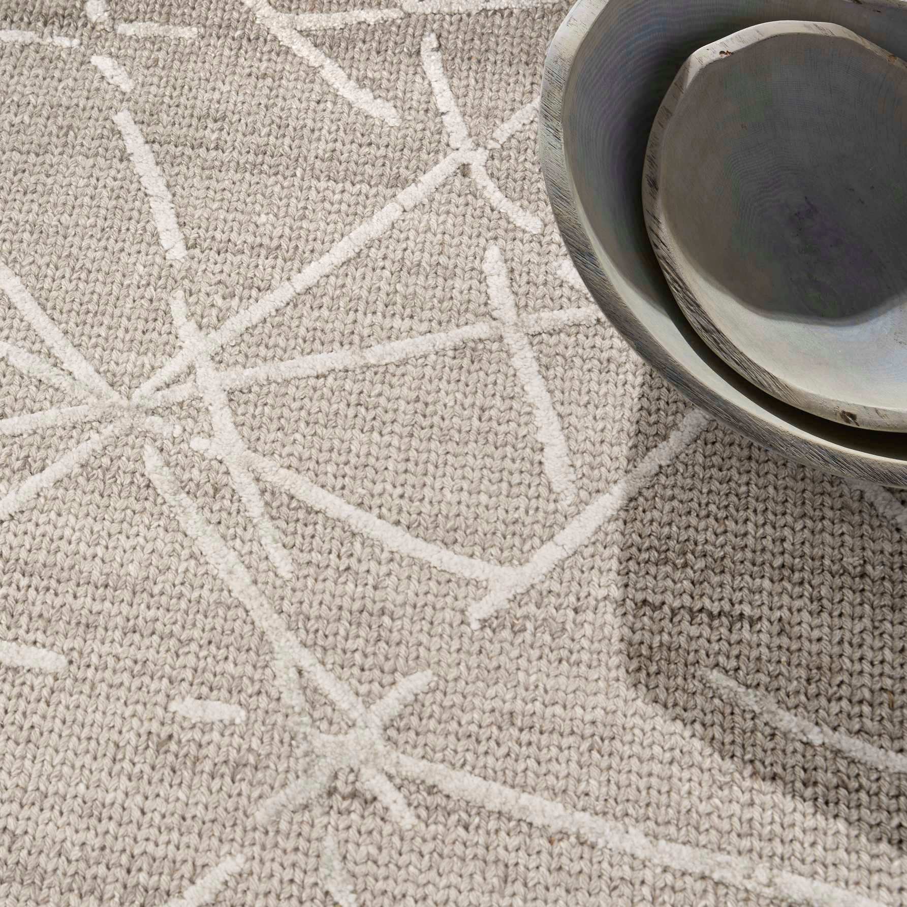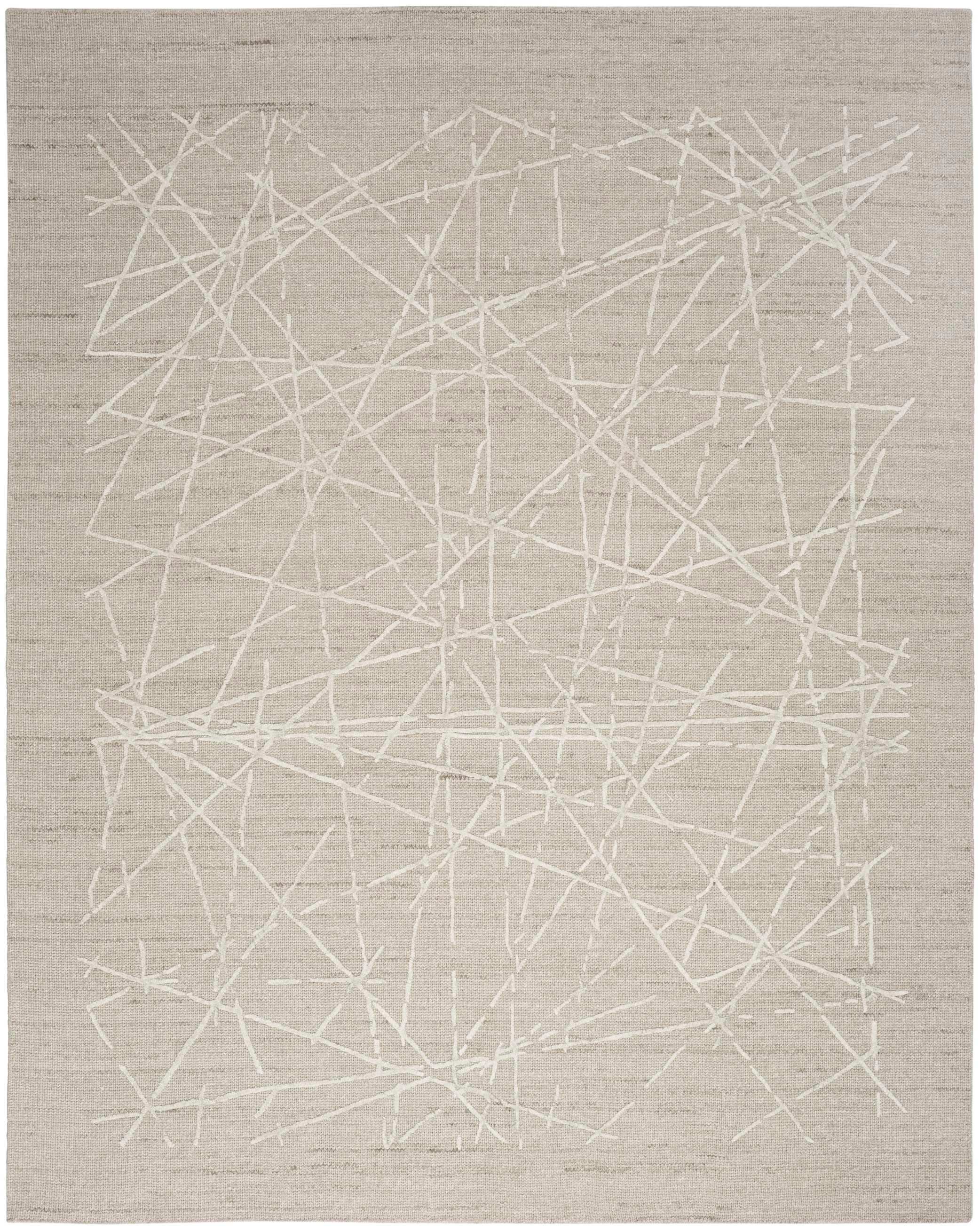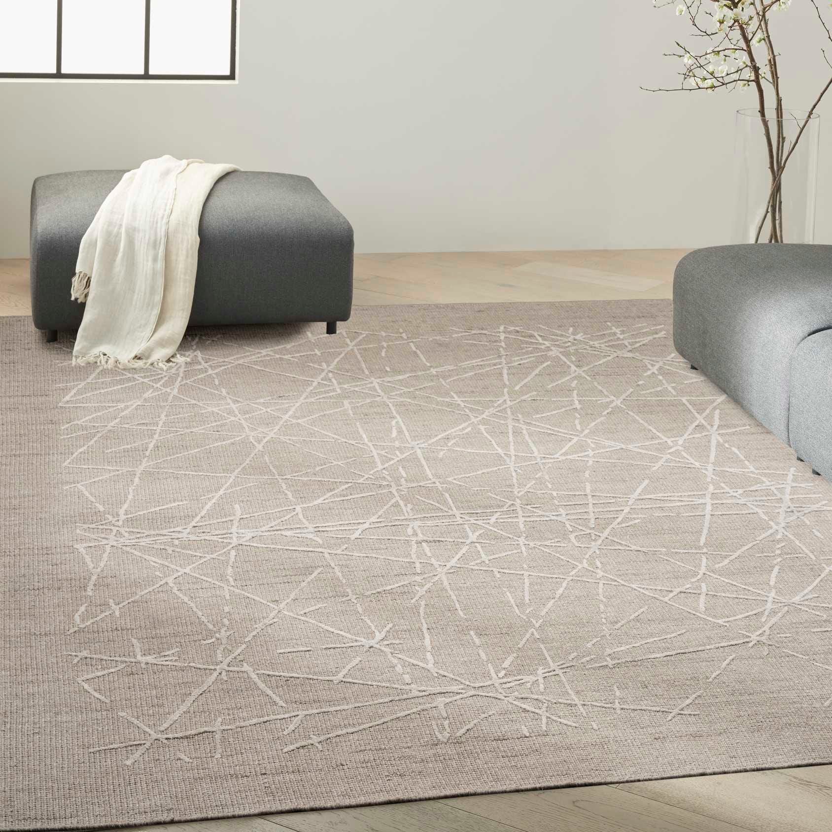 Ground any space in the sophisticated style of this grey Calvin Klein Wander rug. Overlapping raised lines create depth, while a space-dyed ground adds a rhythmic tonal effect. Handmade from New Zealand wool with silky viscose accents.