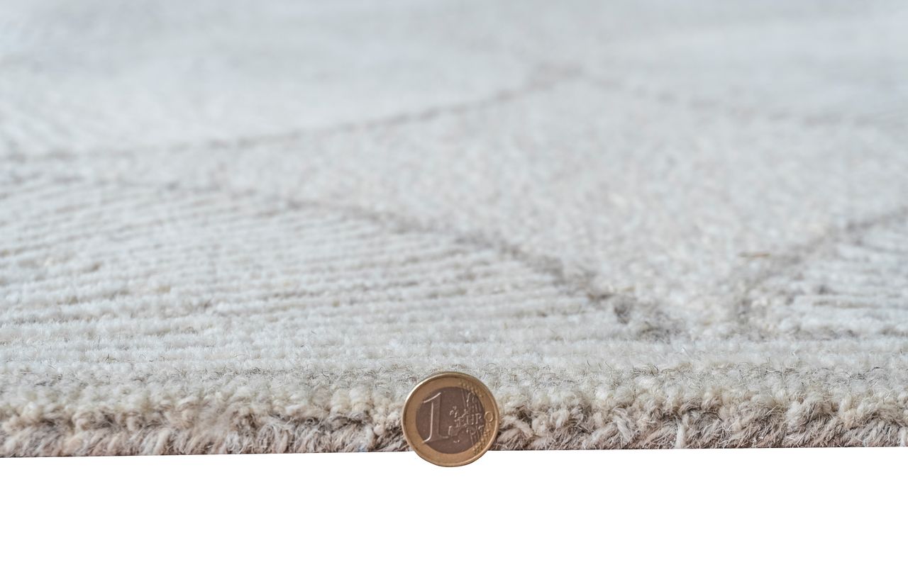 - Textured un-dyed wool in densely constructed tonal looks