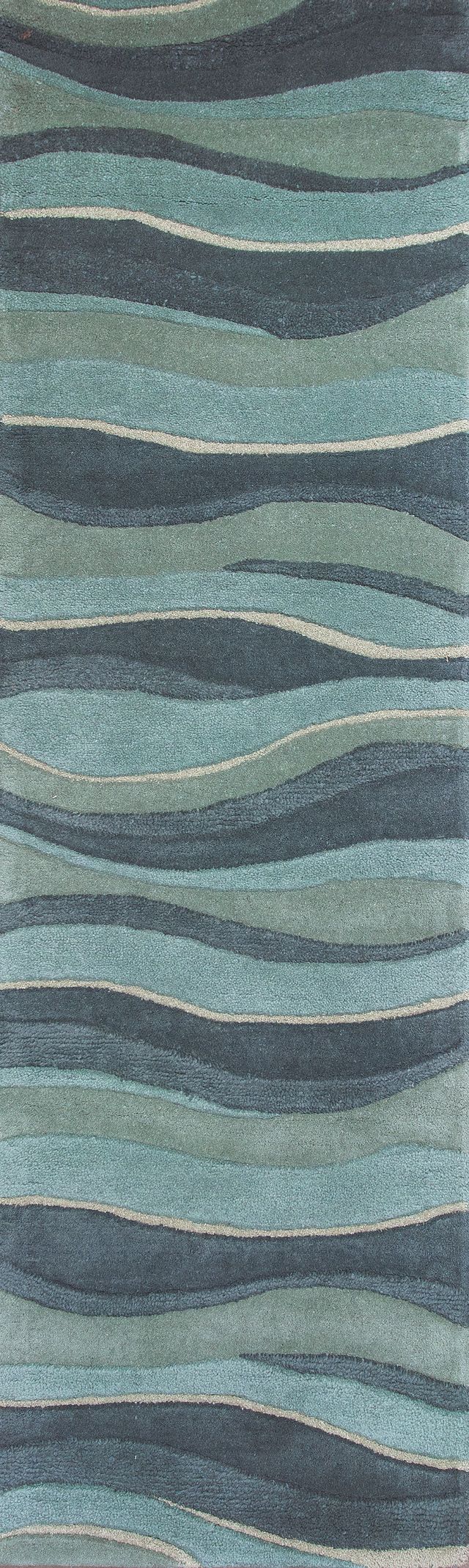 Step into our world and experience a multi-textured masterpiece from our Eternity Collection. Hand- tufted in India of 100% quality wool, these rugs are woven using multi-textured wool, a versatile color palette and a Hi/Lo effect, bringing modern simplicity into our lives. The combination of timeless colors and a variety of textures will create an everlasting presence in any room while setting the foundation for any decorating style. Eternity 1053 Ocean Landscapes 2'3" x 7'6" Runner. Hand Tufted of Multi-Textured Wool with Cotton Backing. Made in India. Vacuum regularly & spot clean stains. Professional cleaning recommended periodically.