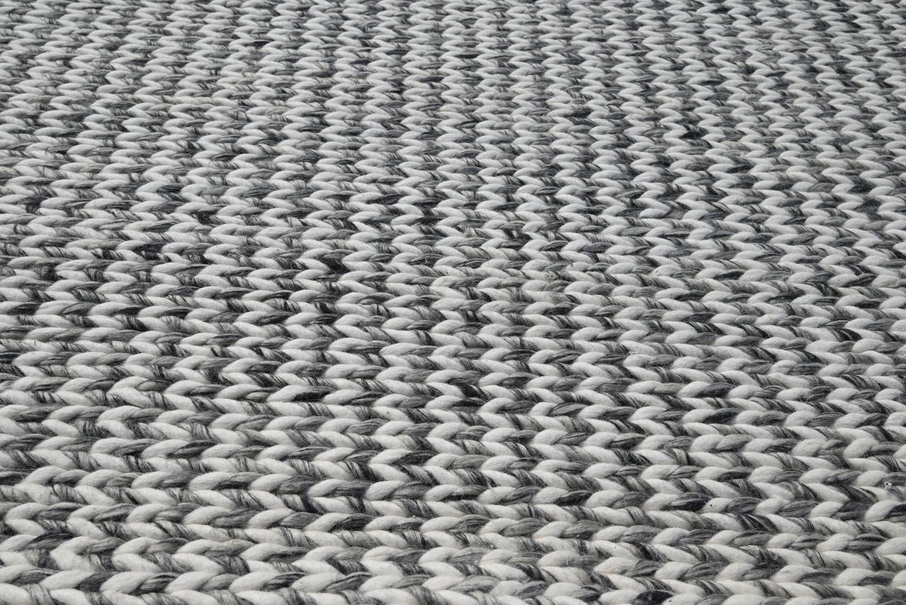 Invite casual sophistication into any room throughout your home with our Cortico Collection. Handwoven of 100% New Zealand wool in India, the soft and nobby weave of these rugs will invite your guests to lounge in your home for hours to comeŸ?? Cortico 6165 Grey/Ivory Chevron 3'3" x 5'3". Handwoven of New Zealand Wool with Cotton backing. Made in India. Vacuum regularly & spot clean stains. Professional cleaning recommended periodically.