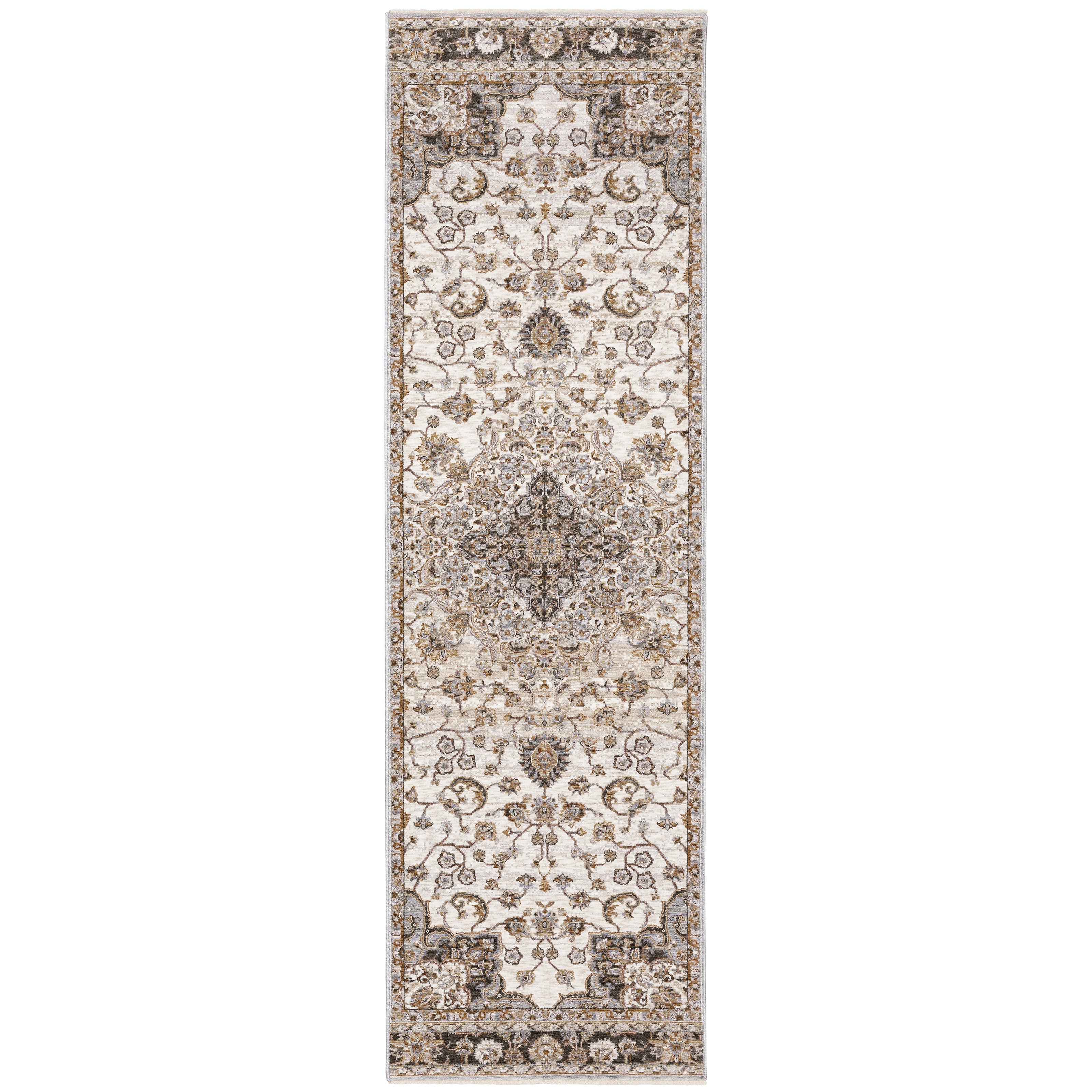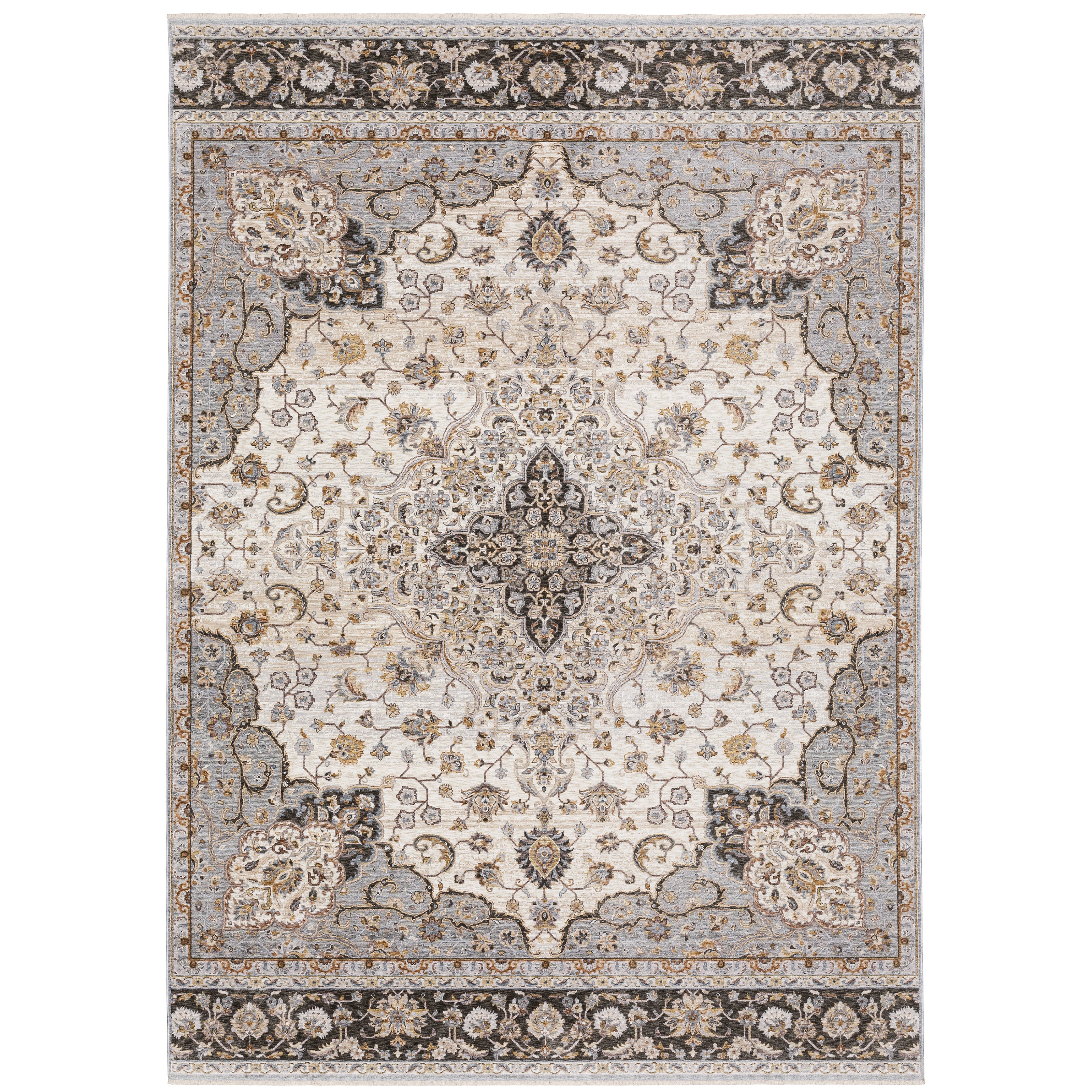 Maharaja is a study in understated elegance. This million point collection is full of sophisticated traditional designs that have been re-imagined into a lovely new color palette. Timeless neutral tones alongside mellow shades of bluestone and muted amber offer subtle treatments for intricately detailed patterns. These beautiful rugs are powerloomed of incredibly soft, space-dyed polyester.