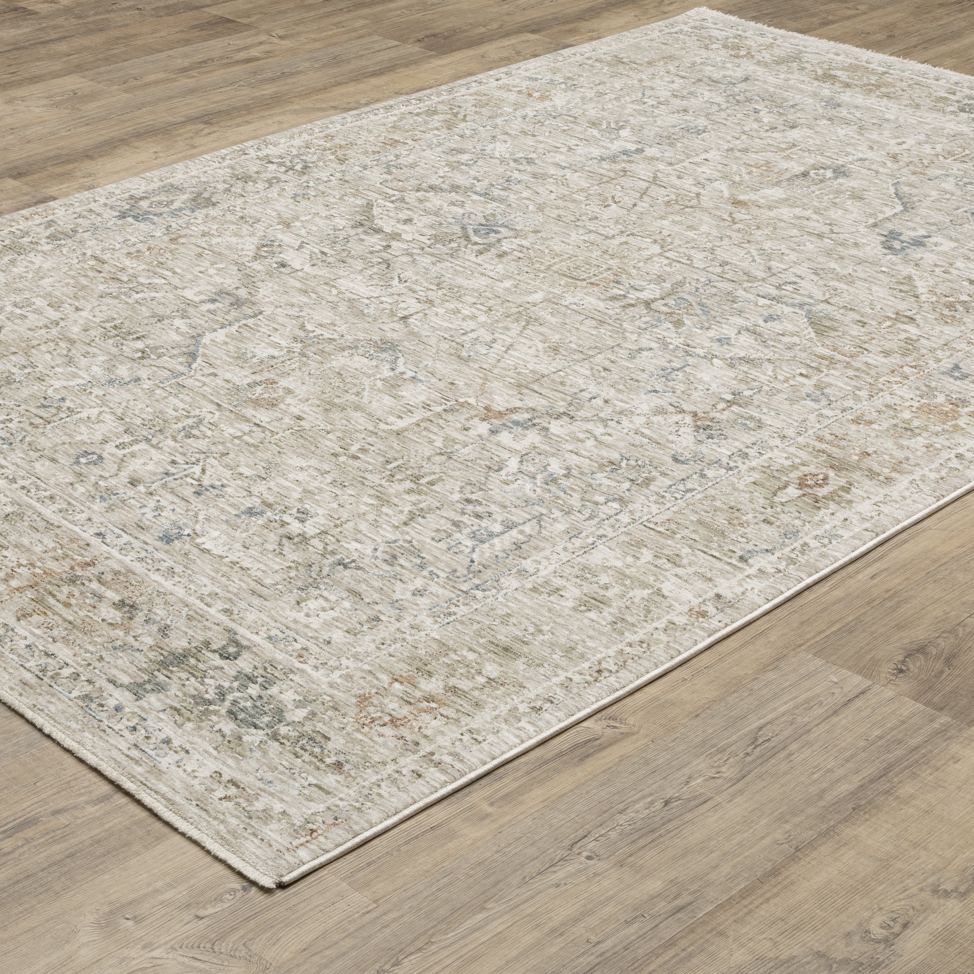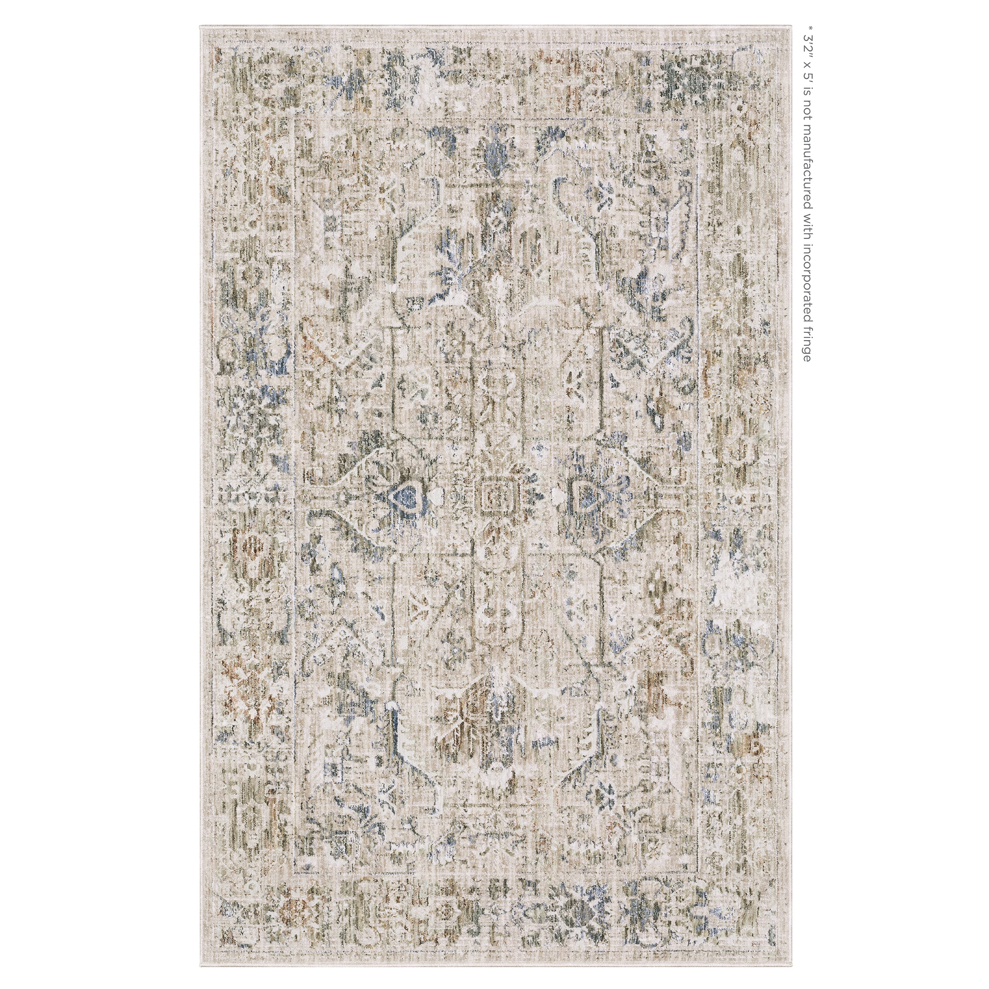 The Avalon collection features beautifully detailed traditional designs in a subtle color palette of warm neutrals with accents of watery blues, golden terracotta tones and touches of mossy green. It is constructed of incredibly soft space-dyed polyester giving the collection a nice hand as well as a look of modern neutrality and textural appeal. (Fringe is not included on the 2’7”x7’7” runner nor the 3’2”x5’ accent rug size.)