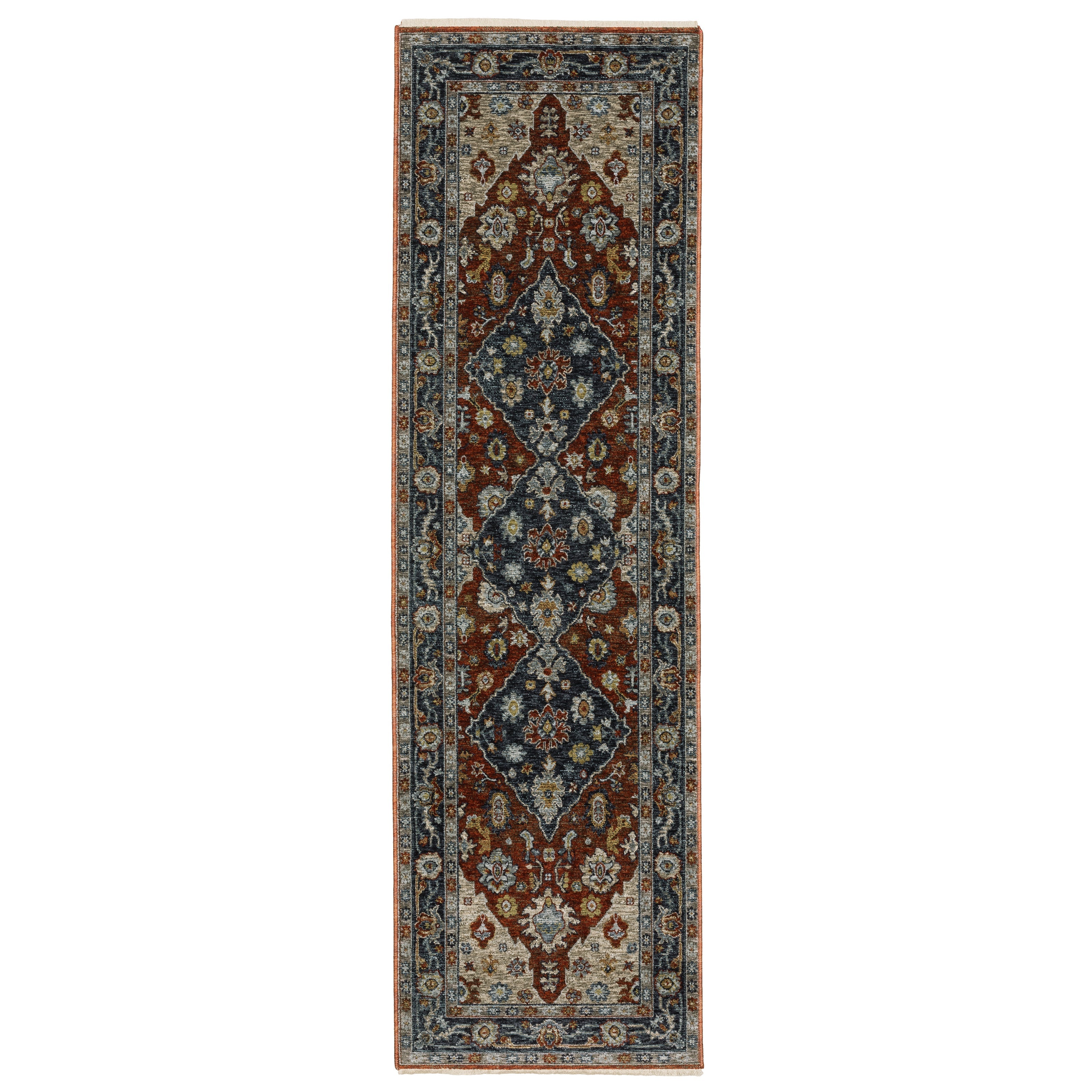 Each rug in the Aberdeen collection is a study in rich heritage and encompasses the beauty of an heirloom textile. Woven of incredibly soft, space-dyed polyester in a high-density, low profile construction the rugs are as durable as they are lovely. Minimal self-fringe adds intrigue and a bit of bohemian flare while the saturated jewel tones and intricate design details evoke feelings of nostalgia and offer authentic traditional appeal.