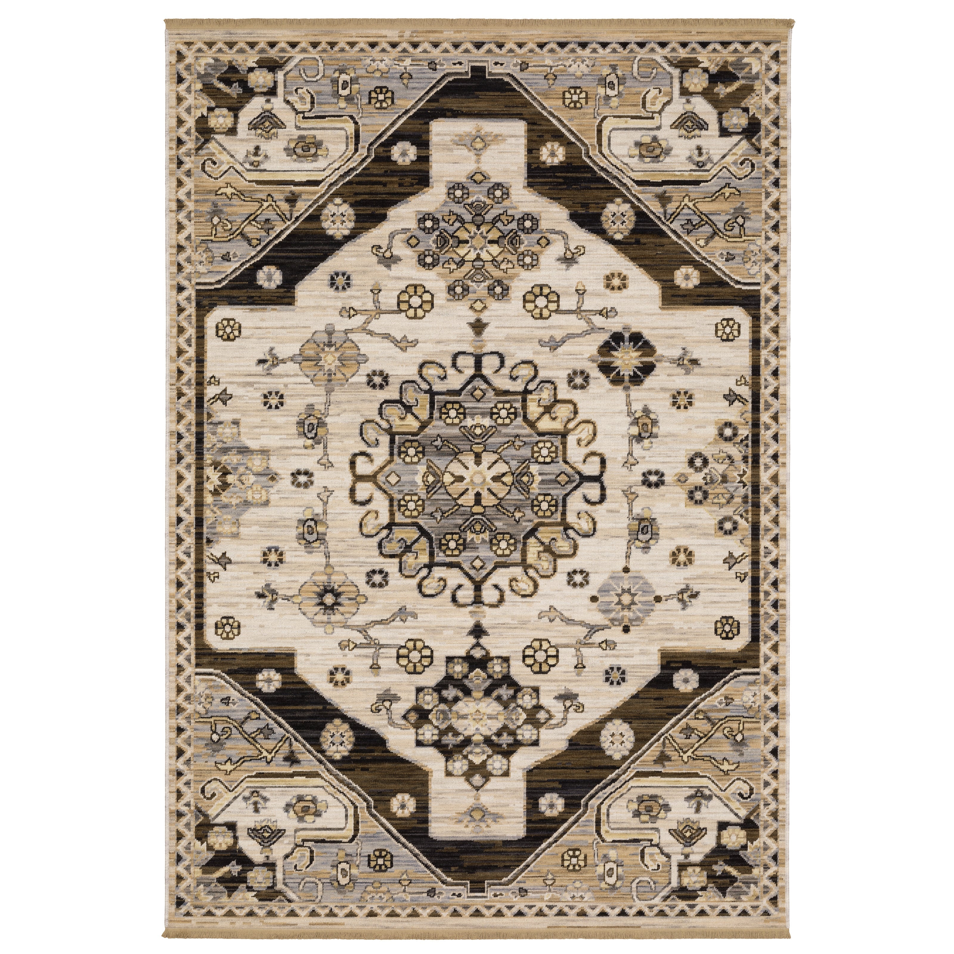 The classically styled Acacia collection features earthy, neutral tones of saturated brown, warm birch and muted gold which are subtly accented with touches of slate blue, soft clay, and moss green. The space-dyed wool and nylon blend is woven in Egypt on an Axminster loom and features incorporated cotton fringe.