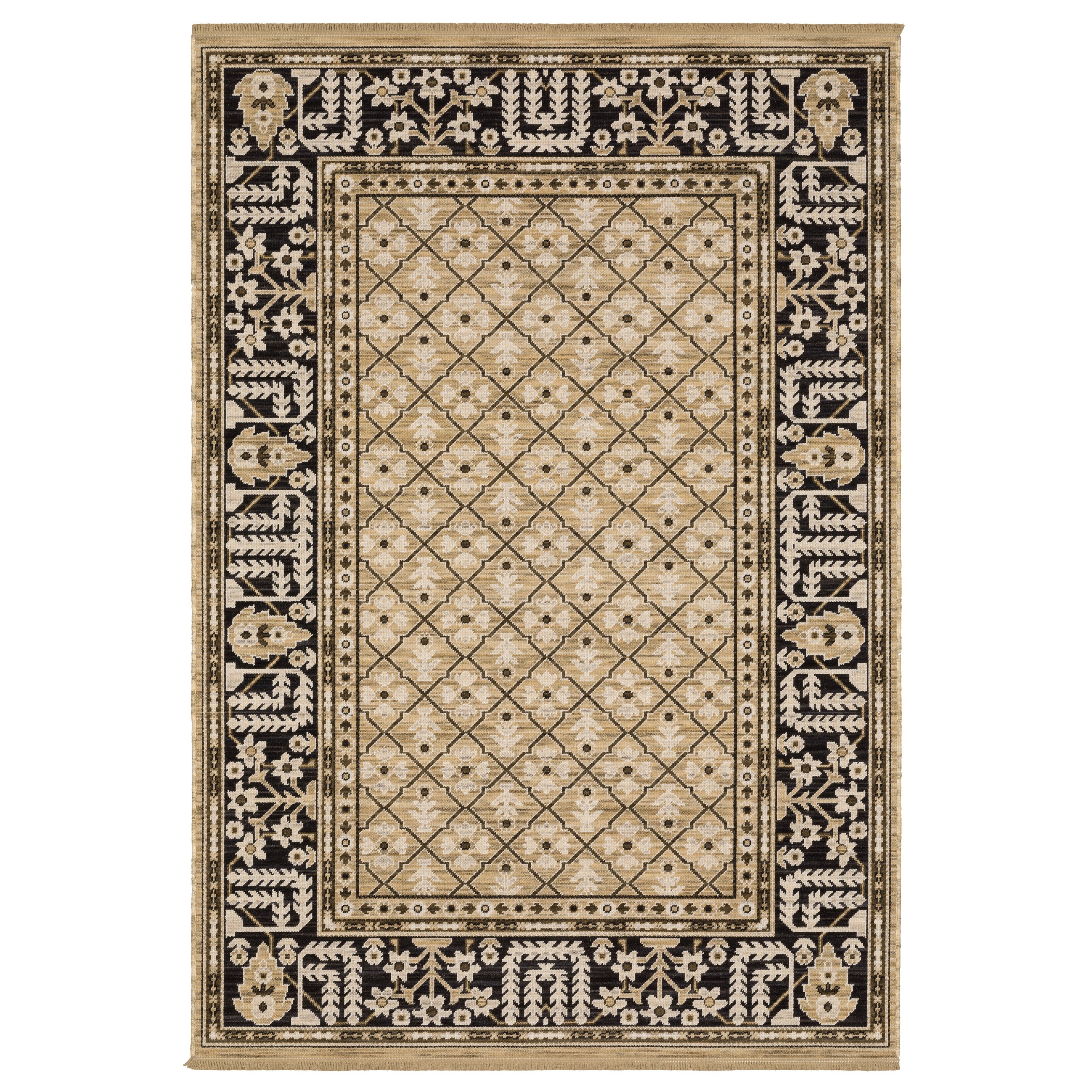The classically styled Acacia collection features earthy, neutral tones of saturated brown, warm birch and muted gold which are subtly accented with touches of slate blue, soft clay, and moss green. The space-dyed wool and nylon blend is woven in Egypt on an Axminster loom and features incorporated cotton fringe.