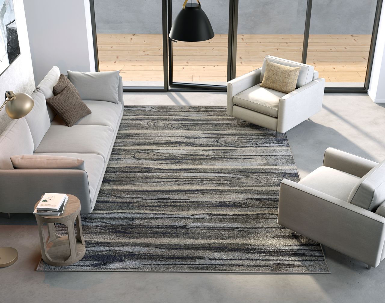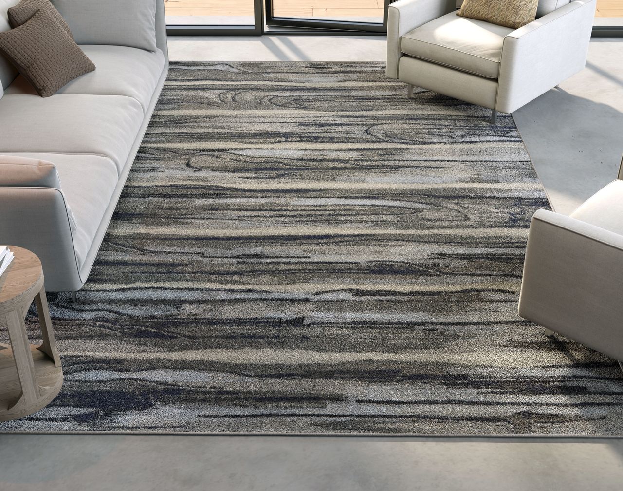Our Illusions Collection features an array of show-stopping watercolor designs. Each pattern is a piece of art for your floors. Ranging from tonals to vibrant palettes, there is sure to be an Illusion to peak your interest! Made in Turkey of 100% polypropelene with 1/2" pile height. Illusions 6210 Grey Landscape 3'3" x 4'11". Machine Woven of Heat-set Polypropelene with No Backing. Made in Turkey. Vacuum regularly & spot clean stains. Professional cleaning recommended periodically.