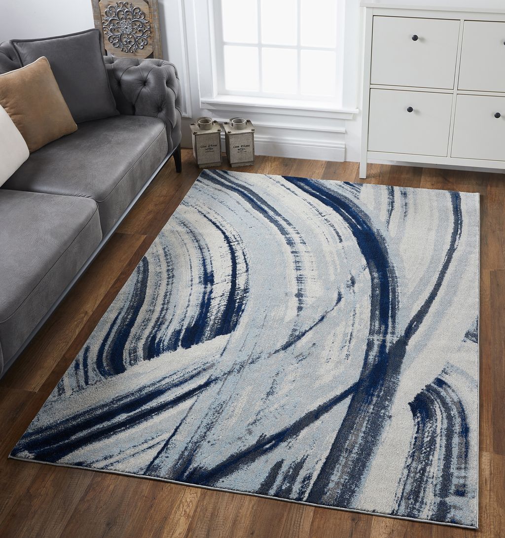 Our Illusions Collection features an array of show-stopping watercolor designs. Each pattern is a piece of art for your floors. Ranging from tonals to vibrant palettes, there is sure to be an Illusion to peak your interest! Made in Turkey of 100% polypropelene with 1/2" pile height. Illusions 6219 Ivory/Blue Elements 3'3" x 4'11". Machine Woven of Heat-set Polypropelene with No Backing. Made in Turkey. Vacuum regularly & spot clean stains. Professional cleaning recommended periodically.