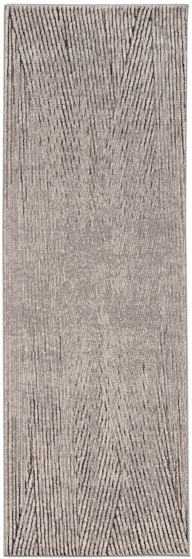 Inspire is a collection of trendy transitional and traditional machine woven rugs with metallic highlights throughout. These beautiful rugs are made in Turkey of shrink polyester and polyester with a 1/4" pile height. Inspire 7504 Ivory/Grey Parker 2'2" x 6'11" Runner. Machine Woven of Shrink Polyester & Polyester with No Backing. Made in Turkey. Vacuum regularly & spot clean stains. Professional cleaning recommended periodically.