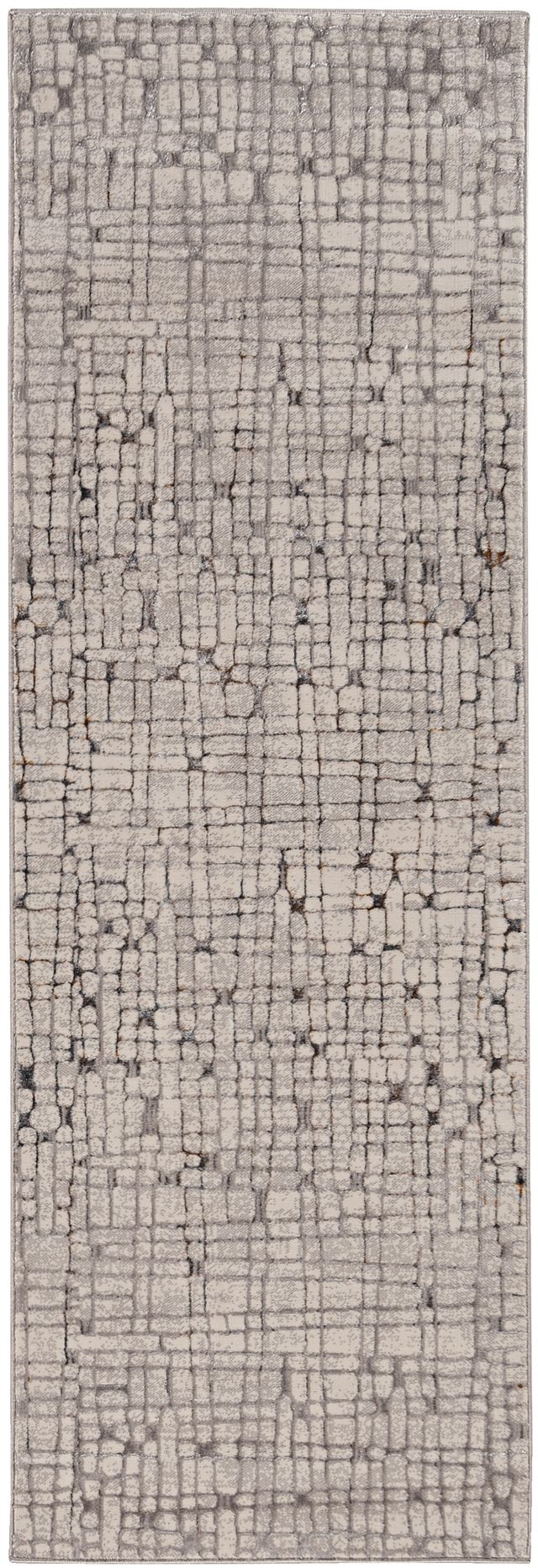 Inspire is a collection of trendy transitional and traditional machine woven rugs with metallic highlights throughout. These beautiful rugs are made in Turkey of shrink polyester and polyester with a 1/4" pile height. Inspire 7505 Grey Tribeca 2'2" x 6'11" Runner. Machine Woven of Shrink Polyester & Polyester with No Backing. Made in Turkey. Vacuum regularly & spot clean stains. Professional cleaning recommended periodically.