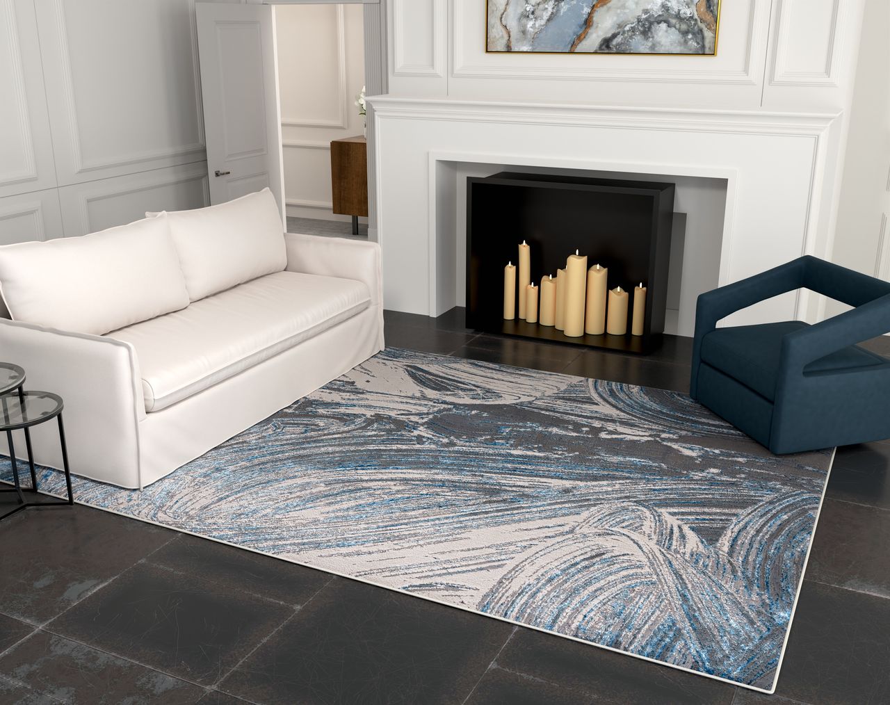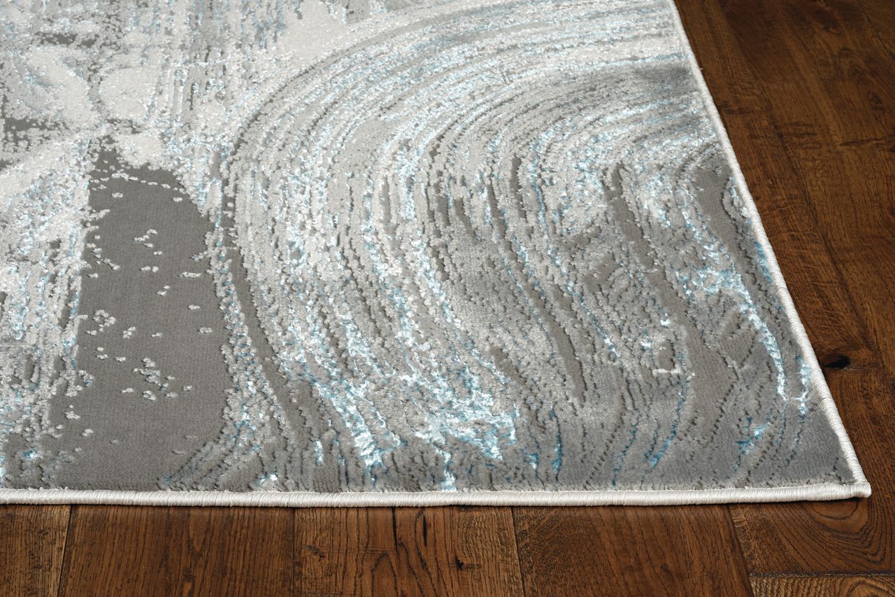 Beautifully crafted rugs adding subtle drama to any room. The texture adds depth, the metallic highlights add luster and the tonal colors make for an easy decorating palette. Luna is machine woven of soft polyester and polypropylene in Turkey and has a ?ªŸ? pile height. Luna 7130 Silver/Blue Stroked 3'3" x 4'11". Machine Woven of Polyester & Polypropylene with No Backing. Made in Turkey. Vacuum regularly & spot clean stains. Professional cleaning recommended periodically.
