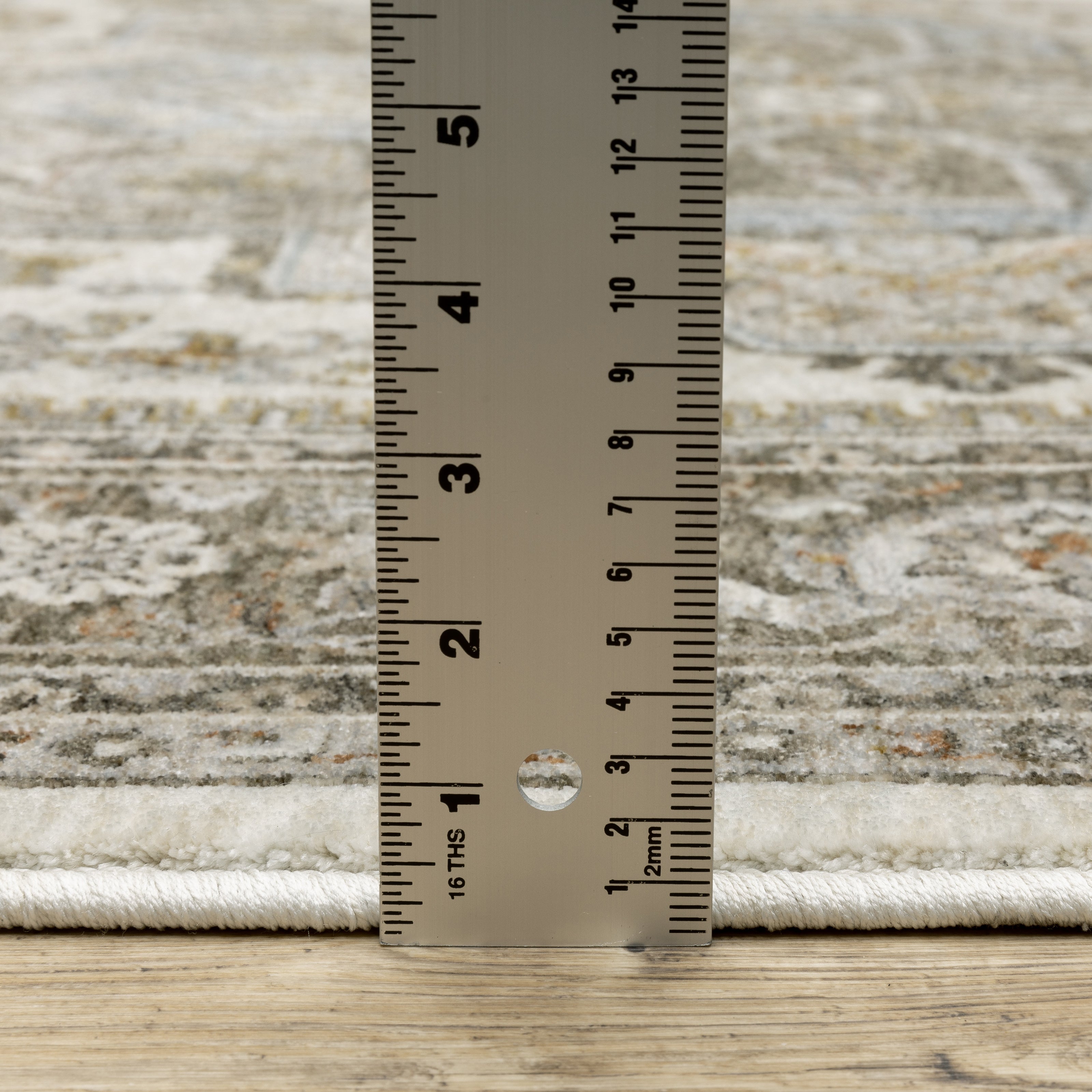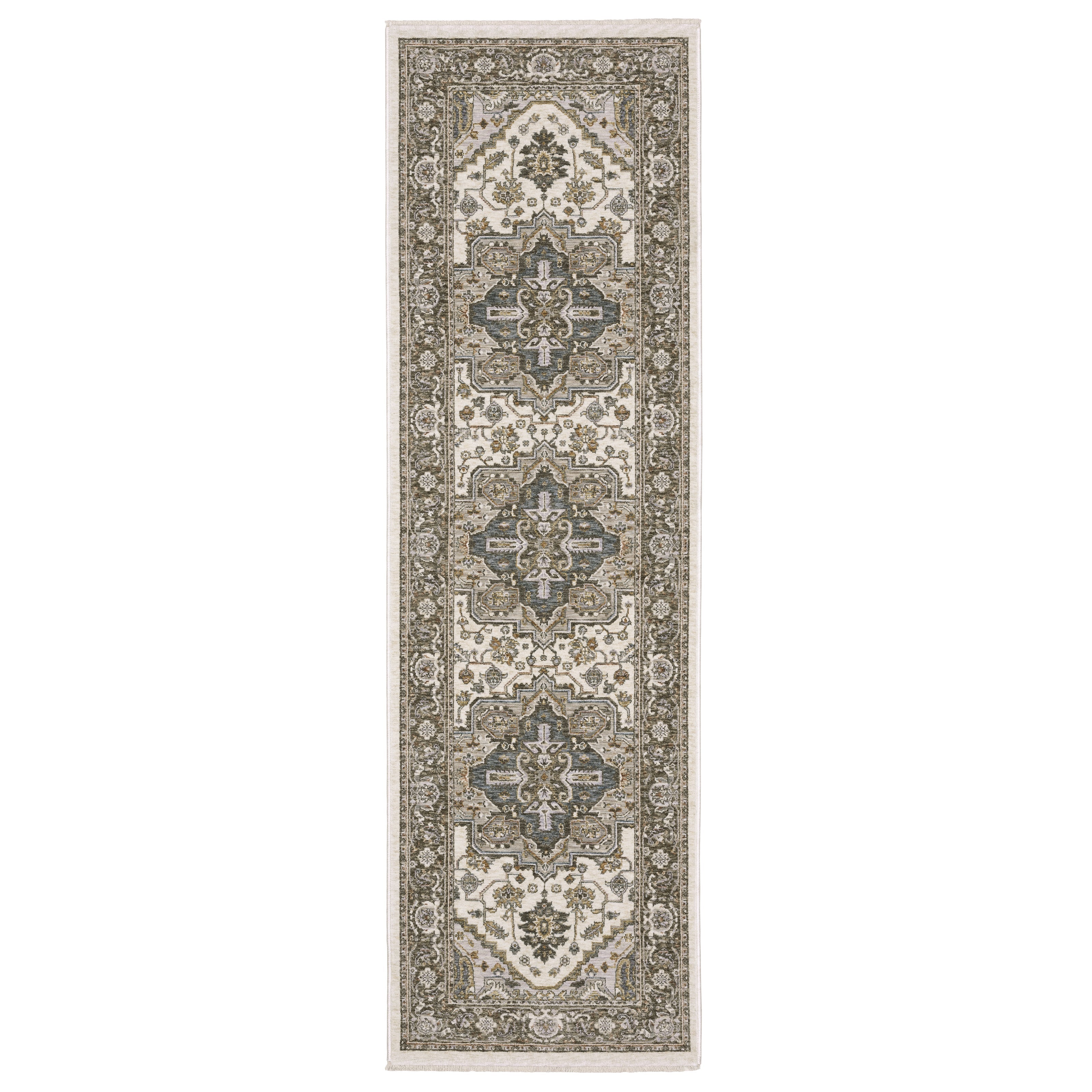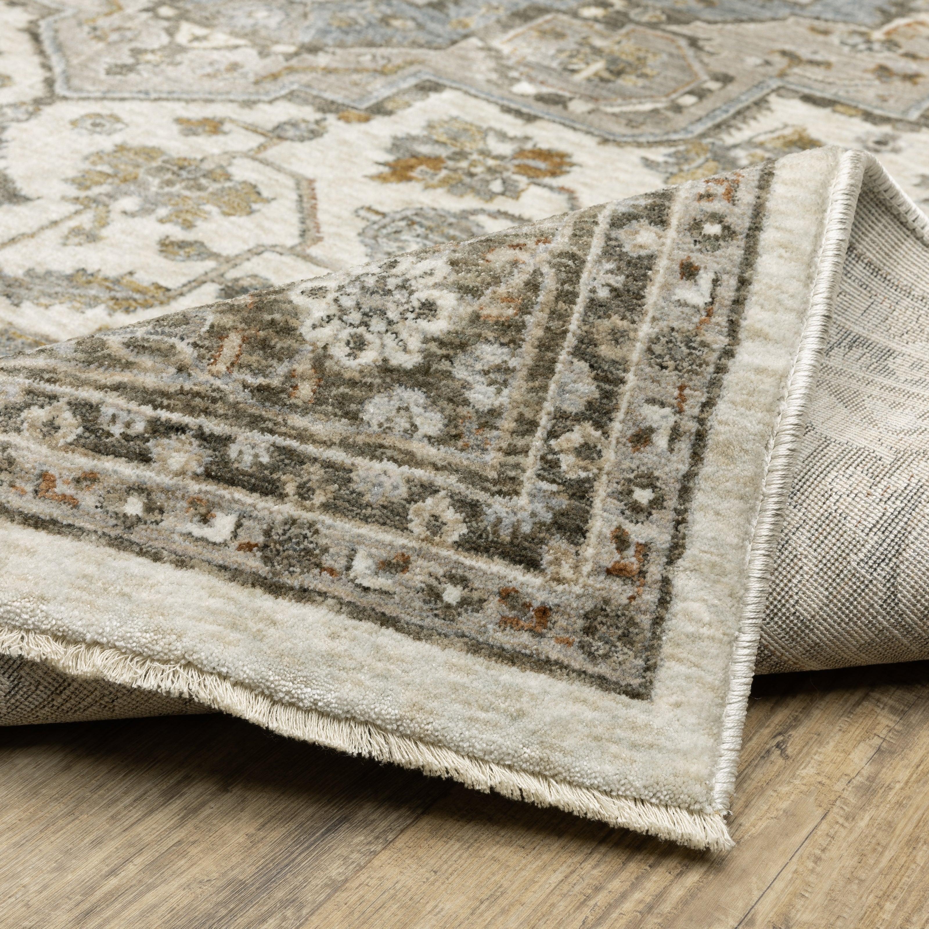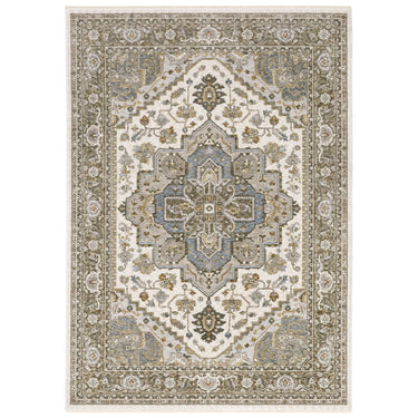 Maharaja is a study in understated elegance. This million point collection is full of sophisticated traditional designs that have been re-imagined into a lovely new color palette. Timeless neutral tones alongside mellow shades of bluestone and muted amber offer subtle treatments for intricately detailed patterns. These beautiful rugs are powerloomed of incredibly soft, space-dyed polyester.
