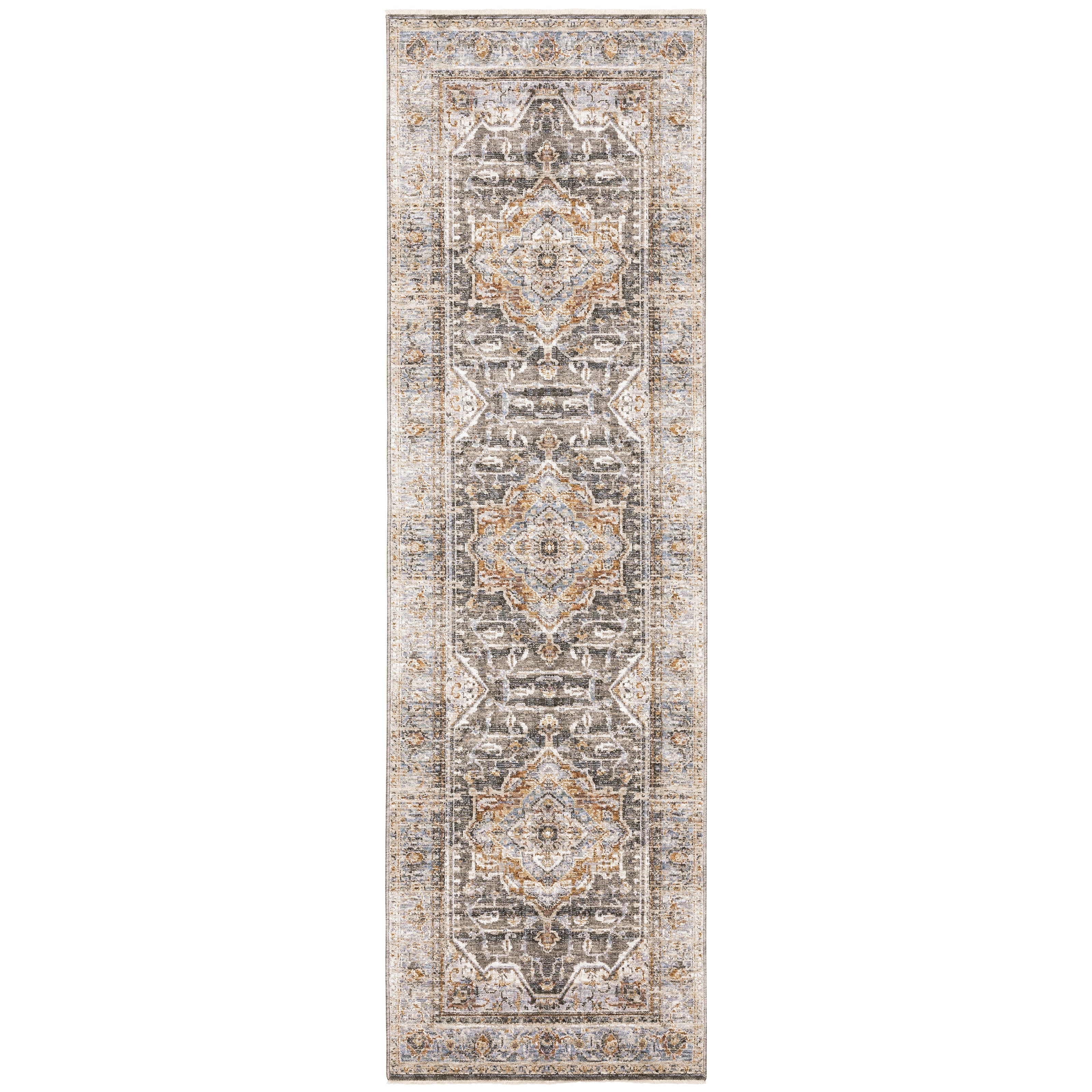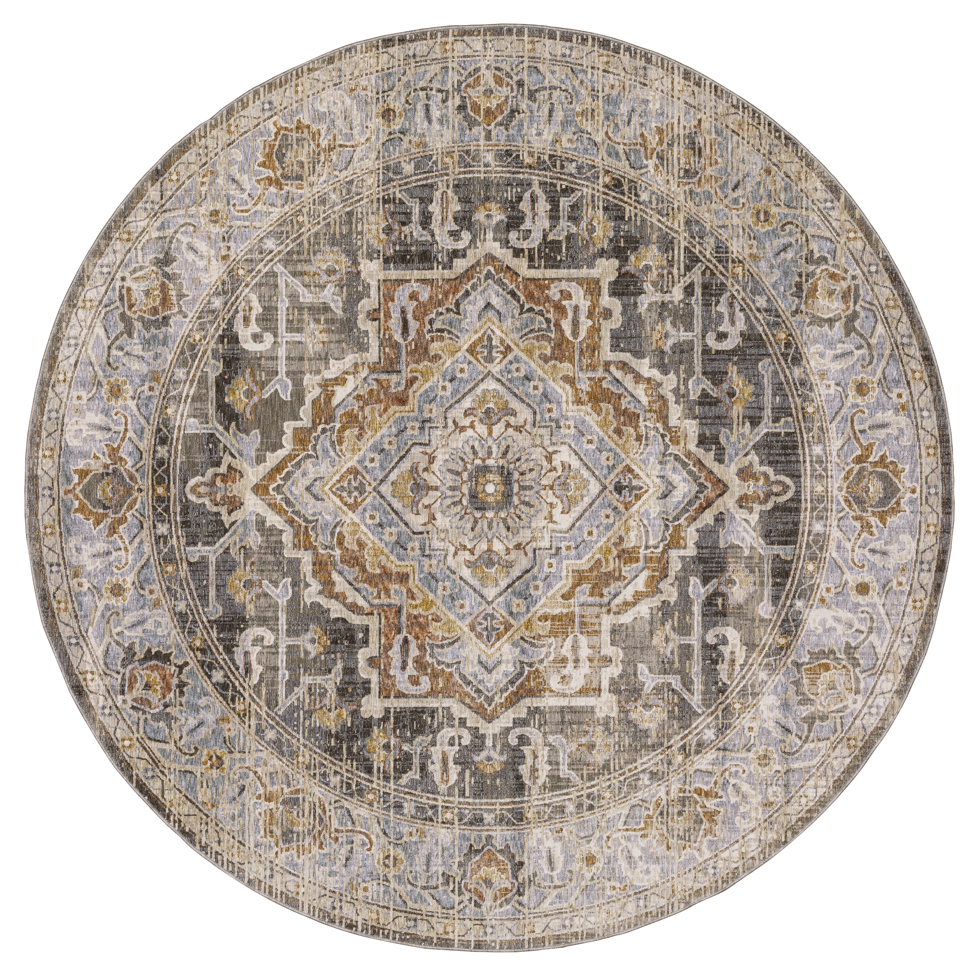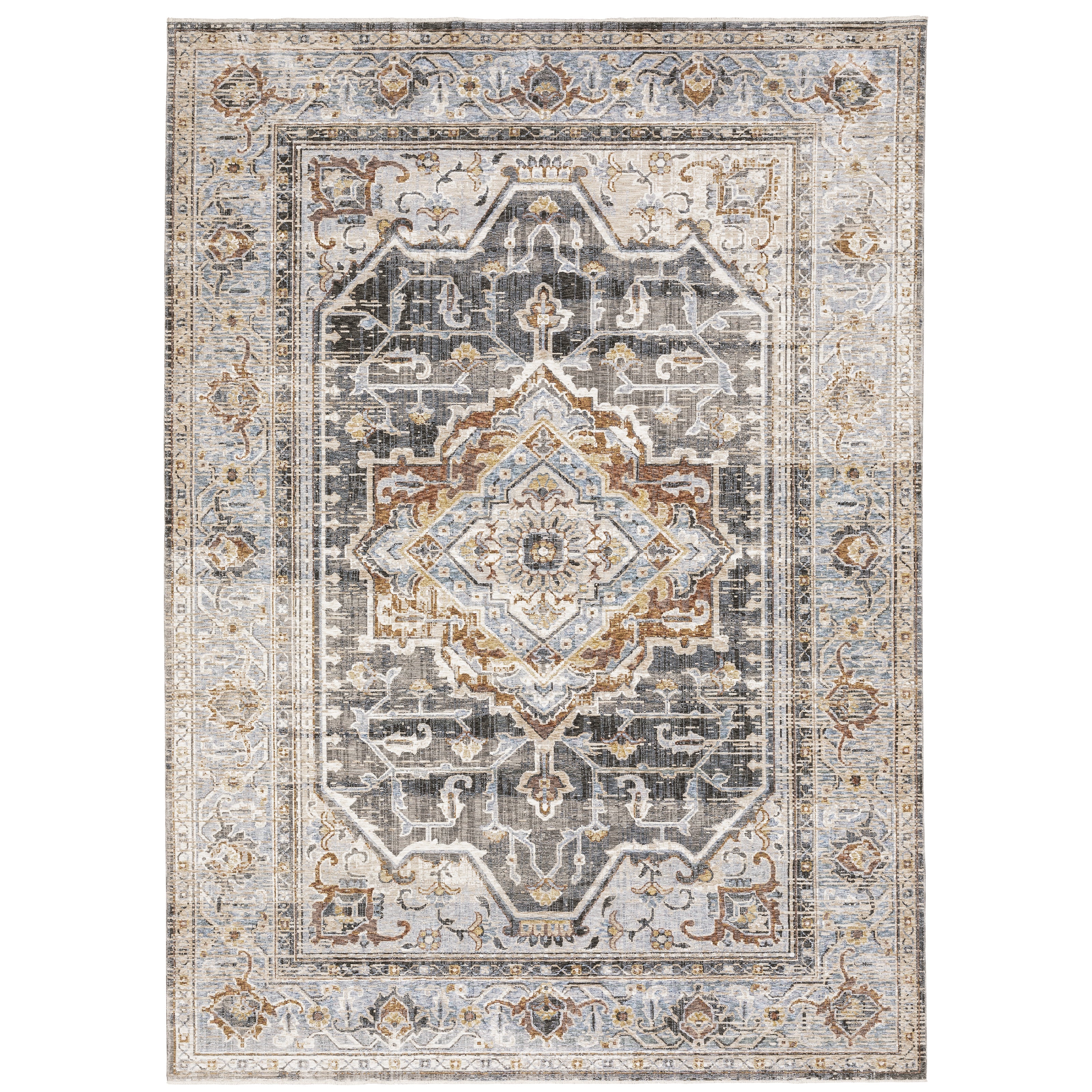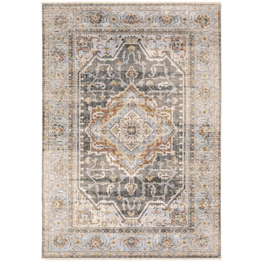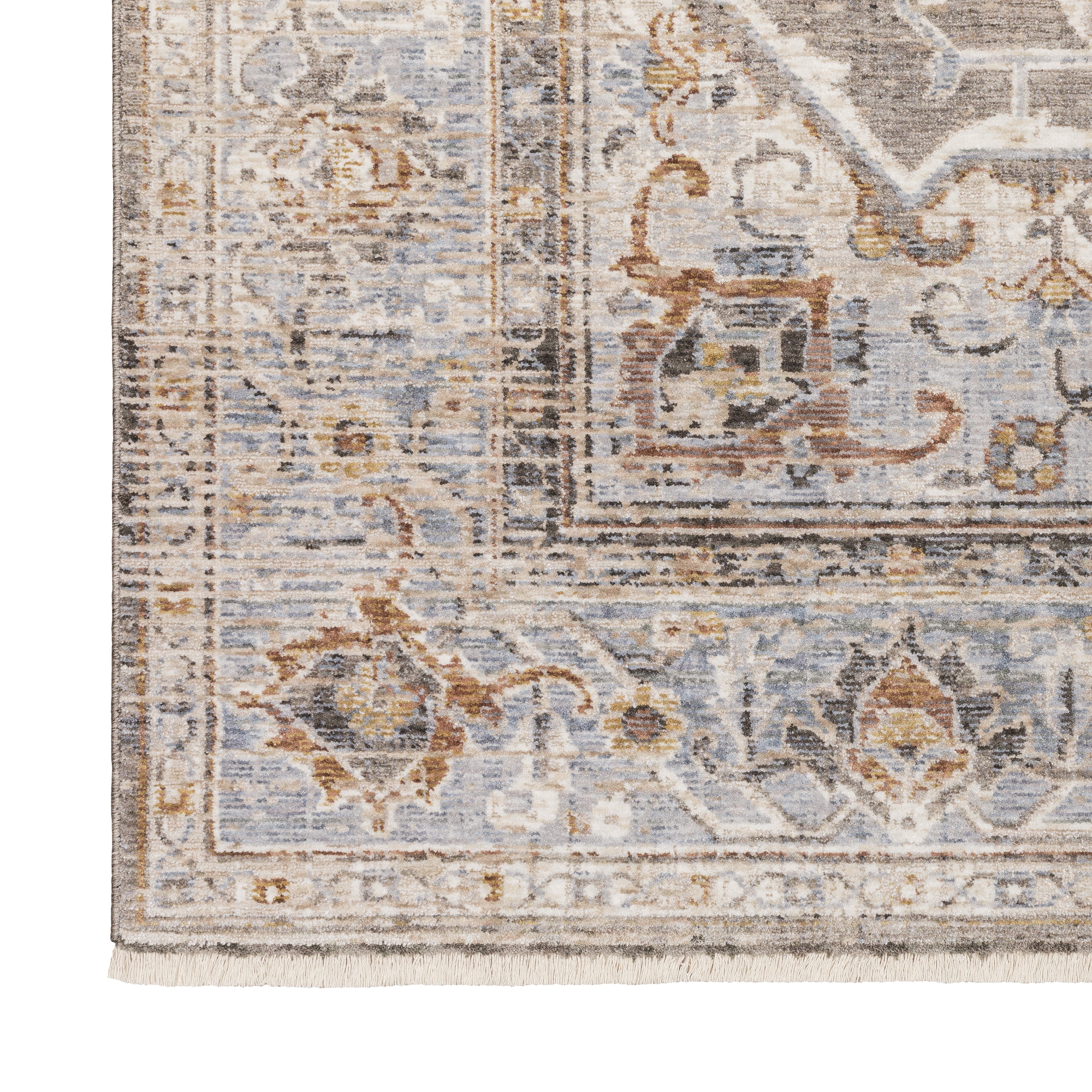 Maharaja is a study in understated elegance. This million point collection is full of sophisticated traditional designs that have been re-imagined into a lovely new color palette. Timeless neutral tones alongside mellow shades of bluestone and muted amber offer subtle treatments for intricately detailed patterns. These beautiful rugs are powerloomed of incredibly soft, space-dyed polyester.