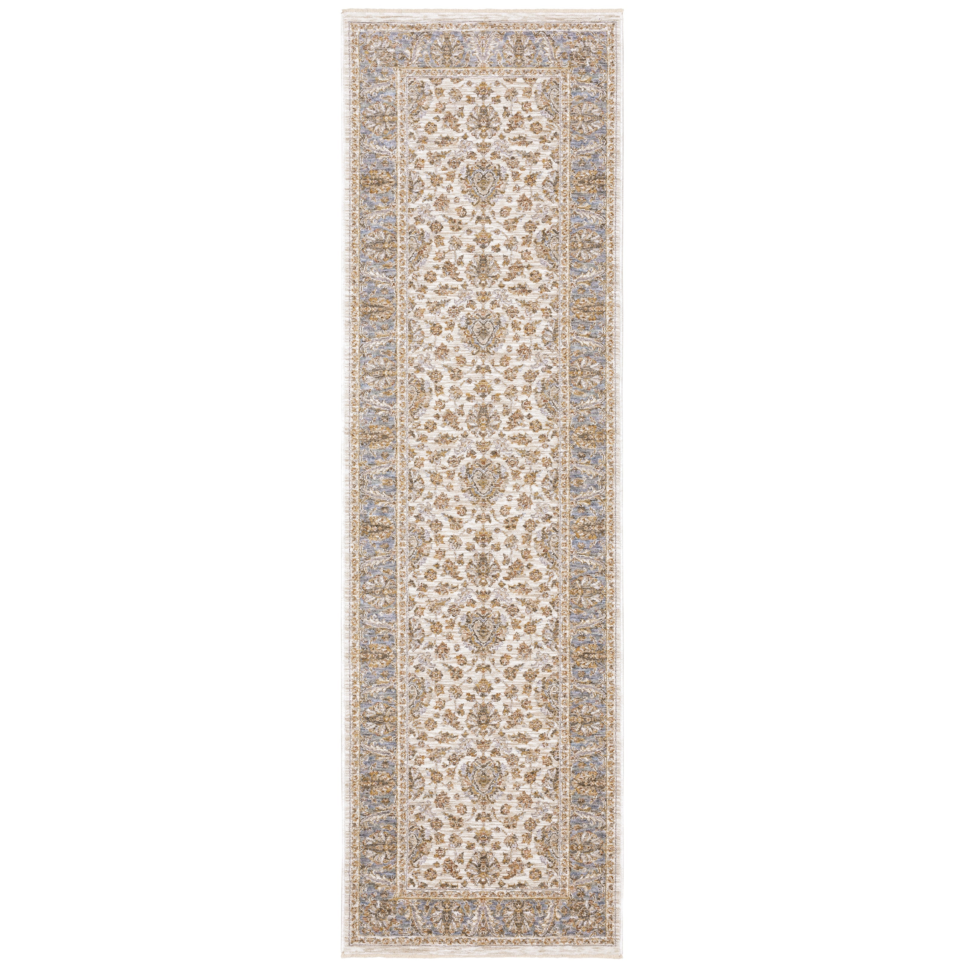 Maharaja is a study in understated elegance. This million point collection is full of sophisticated traditional designs that have been re-imagined into a lovely new color palette. Timeless neutral tones alongside mellow shades of bluestone and muted amber offer subtle treatments for intricately detailed patterns. These beautiful rugs are powerloomed of incredibly soft, space-dyed polyester.