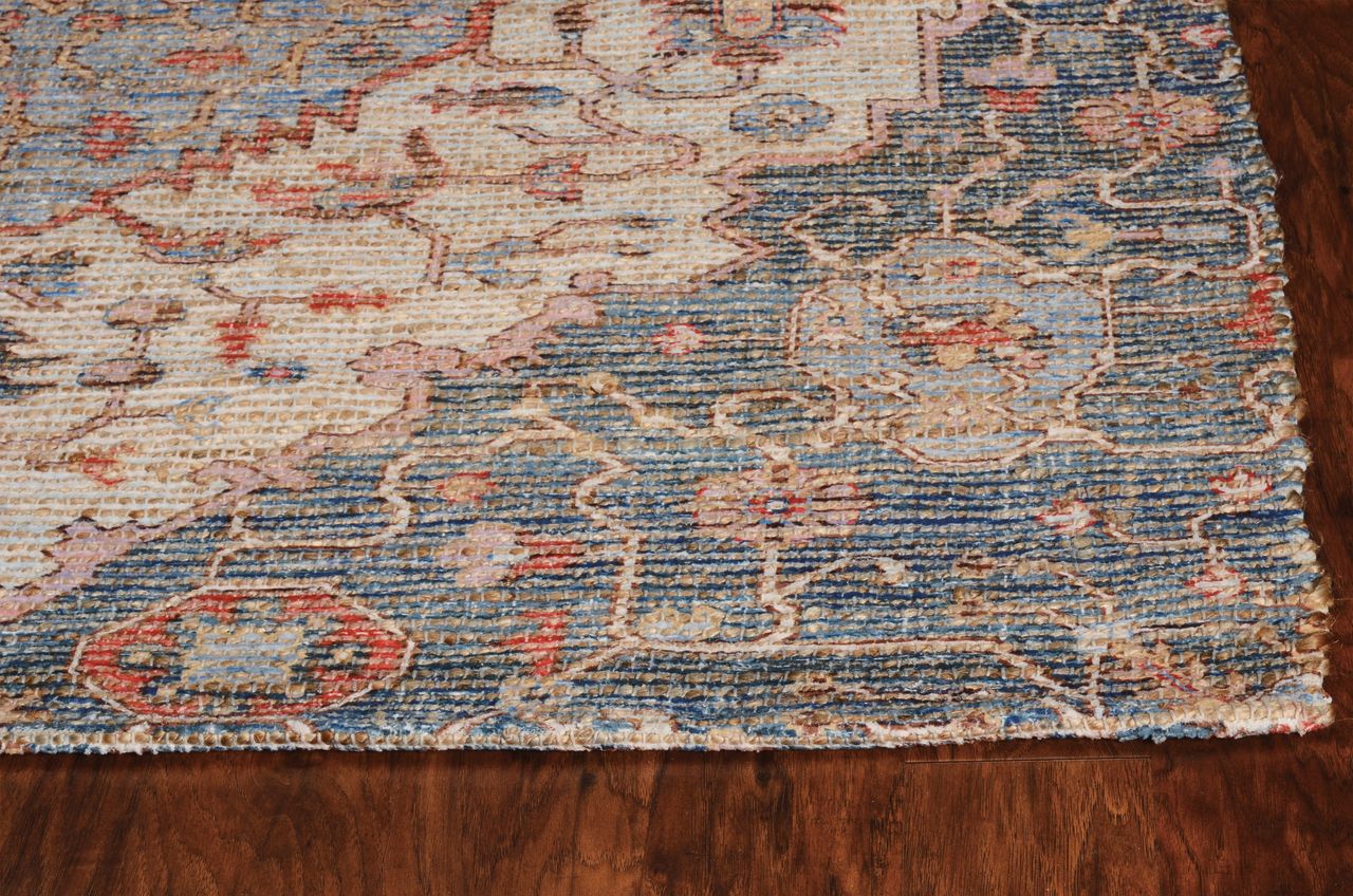 Our Morris rugs portray the beauty of old world tradition with a modern twist. Hand-woven jute and polyester chenille chindis designed with vibrant and trendy colors in distressed traditional prints. Keeping the tradition authentic, these rugs are made in India and have a low ?ªŸ? pile height. These rugs are a beautiful accent piece whether your style is classic and traditional or unique and trendy. Morris 2223 Blue/Red Gramercy 27" x 45". Handwoven of Jute & Polyester with No Backing. Made in India. Vacuum regularly & spot clean stains. Professional cleaning recommended periodically.