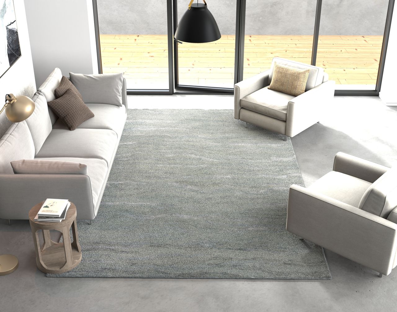 Discover your inner serenity with this collection. The texture of the wool with viscose highlights gives each rug a peaceful and serene vibe we could all use in our busy lives. This collection is beautifully hand-tufted in India with a 1/2" pile height. Serenity 1253 Slate Breeze 3'3" x5'3". Hand Tufted of Wool with Viscose Highlights with Cotton Backing. Made in India. Vacuum regularly & spot clean stains. Professional cleaning recommended periodically.