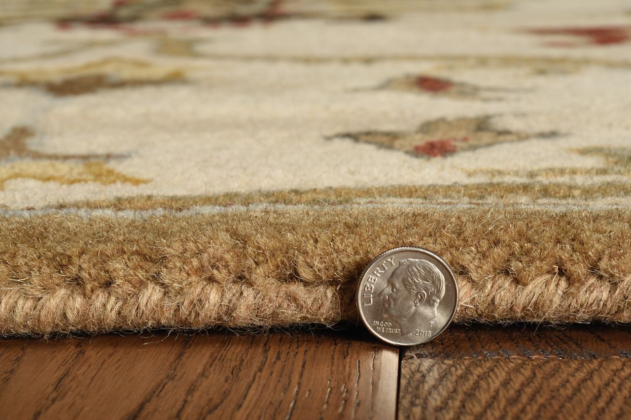 Unleash the beauty within as you walk through our Syriana Collection. Hand-tufted in India of 100% New Zealand wool, come discover these exquisitely designed and ultra- soft traditional rugs. These pieces combine old-world elegance with trend-setting colors to deliver tapestries for your floors. Syriana 6012 Champagne Agra 2'3" x 7'6" Runner. Hand Tufted of New Zealand Wool with Cotton Backing. Made in India. Vacuum regularly & spot clean stains. Professional cleaning recommended periodically.