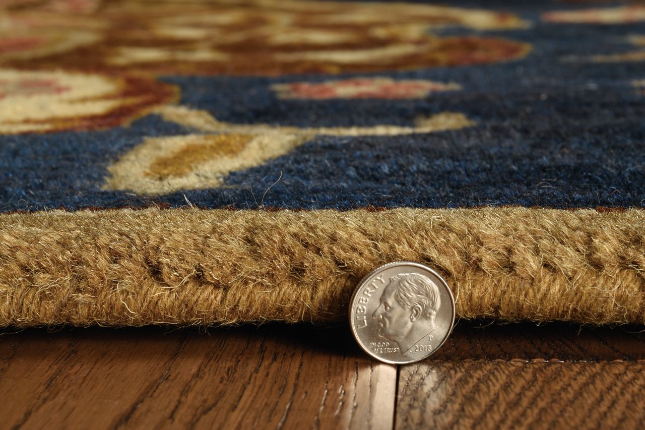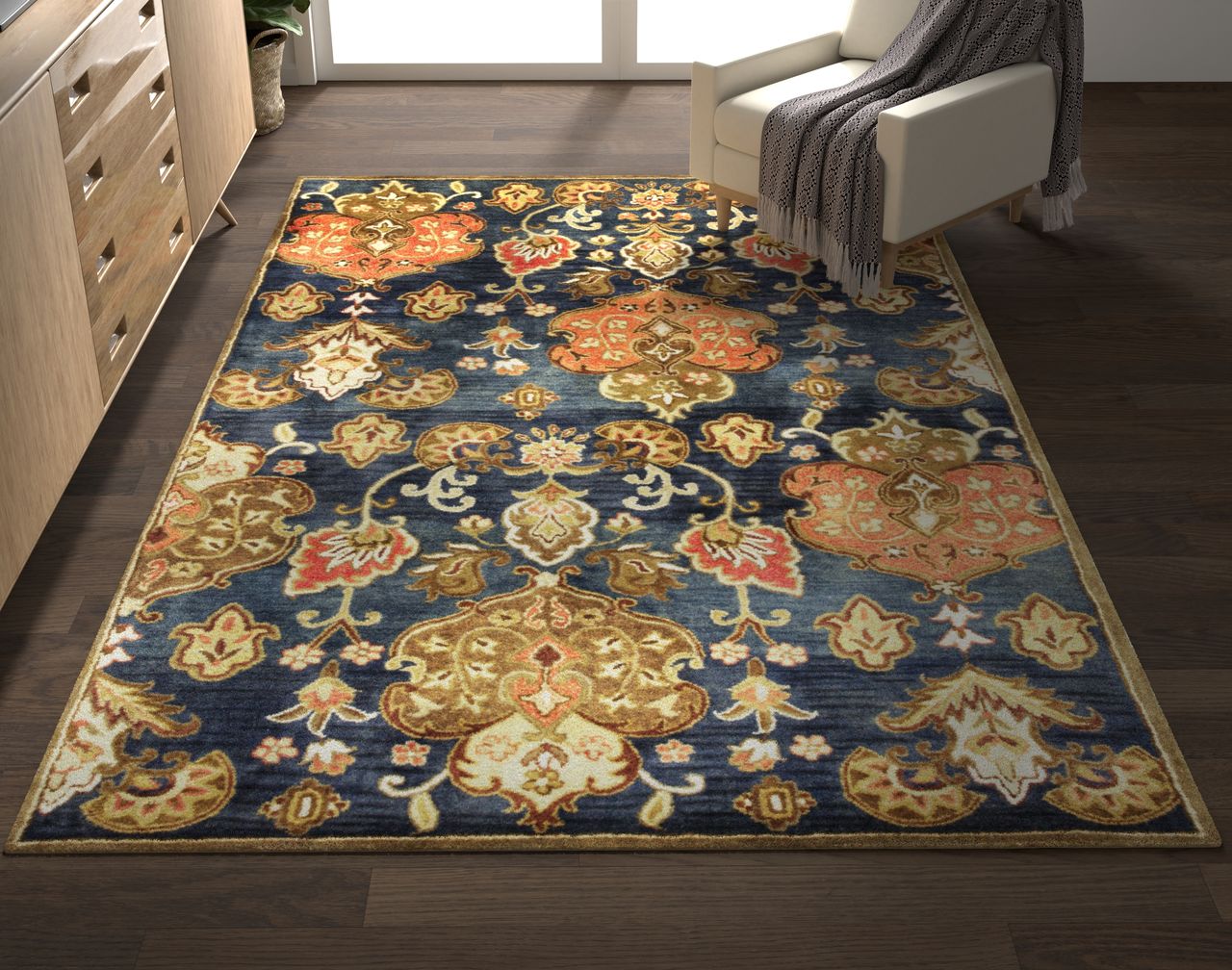 Unleash the beauty within as you walk through our Syriana Collection. Hand-tufted in India of 100% New Zealand wool, come discover these exquisitely designed and ultra- soft traditional rugs. These pieces combine old-world elegance with trend-setting colors to deliver tapestries for your floors. Syriana 6020 Navy Tapestry 2'3" x 7'6" Runner. Hand Tufted of New Zealand Wool with Cotton Backing. Made in India. Vacuum regularly & spot clean stains. Professional cleaning recommended periodically.