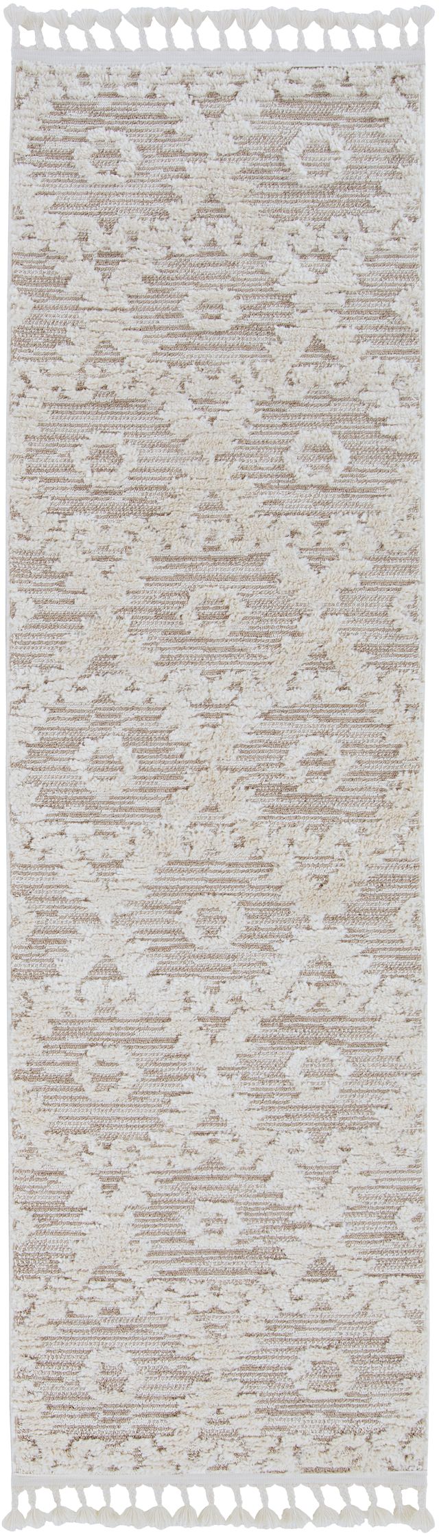 Combined with comfort, style, and design these rugs are out of this world trendy! Willow is 100% polyester machine woven with a decorative cut loop pile and of course, fringe! These rugs will be a statement piece in your home for years. Exclusively made in Turkey. Willow 1103 Ivory Beige Boho 2'2" x 7'6" Runner. Machine Woven of Polyester with No Backing. Made in Turkey. Vacuum regularly & spot clean stains. Professional cleaning recommended periodically.